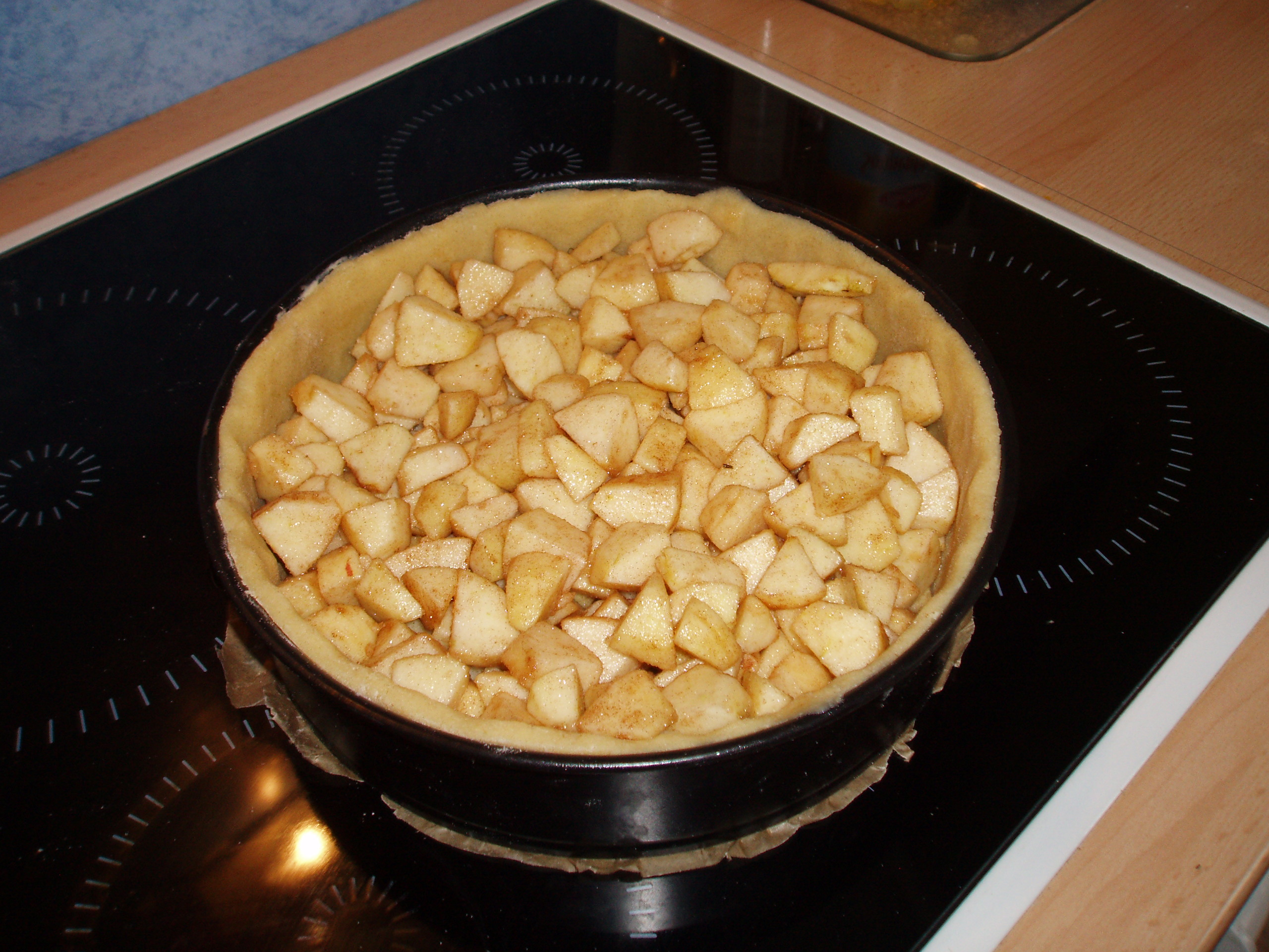 Vor ein paar Monaten war ich in Amsterdam und habe dort in der „Villa Zeezicht“, einem kleinen Kaffee, den wohl besten Apfelkuchen der Welt gegessen. Für mich der „Beste“, weil er ohne Rosinen war. In einem Reiseführer habe ich das Rezept gefunden und es ein bißchen abgewandelt. Wer Rosinen mag, kann natürlich Rosinen dazugeben. Mir gefällt auch, dass der Mürbteig sofort verarbeitet werden kann und nicht erst gekühlt werden muss.